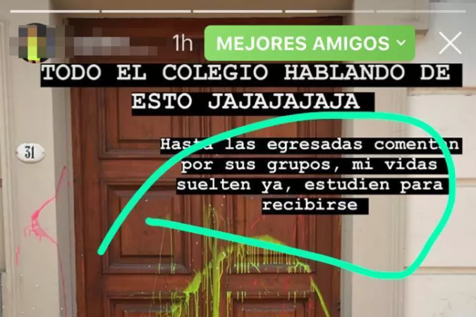 En los grupos de WhatsApp comenzaron a circular los videos con mensajes de indignación. Las mismas alumnas en sus historias de Instagram señalan que incluso las egresadas del colegio están hablando del tema. Los videos se filtraron ya que las autoras lo habían subido al listado de "Mejores amigos", una función que permite a los usuarios de Instagram difundir contenido únicamente entre destinatarios elegidos.