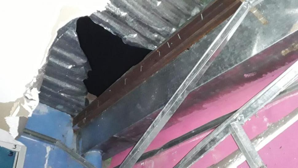 POR EL TECHO. Los ladrones rompieron las chapas para ingresar al comedor.