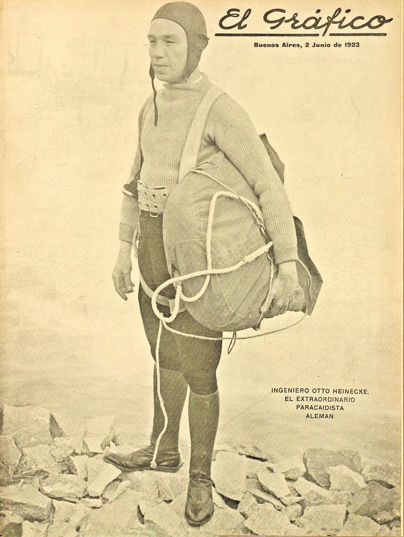 En abril de 1924, Heinecke realizó la primera exhibición de paracaidismo en la ciudad de Bahía Blanca. Junto con él saltó Elisa Schneider. Llevaban practicados, en el marco de una gira mundial, más de 80 lanzamientos.
