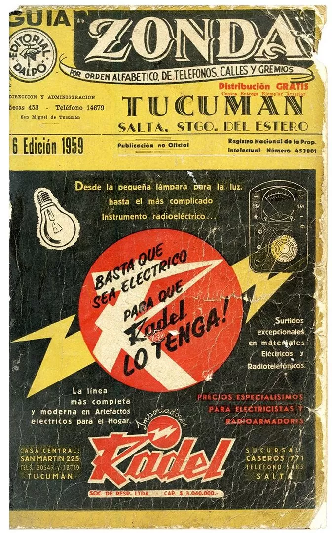 Lo que nos interesa recordar es que, de pronto, a esa lista oficial de la CAT le apareció una fuerte competencia. En 1954, salió a la calle la denominada “Guía Zonda”. Informaba los teléfonos de todos los abonados de Tucumán, Salta y Santiago del Estero, como la de la CAT. Pero la aventajaba su carácter de reversa: podían averiguarse el nombre de un abonado teniendo sólo el teléfono, o ubicarlo por medio de su domicilio. Era de distribución gratuita. La editaba “Dalto”, empresa con domicilio en Muñecas 453 y la imprimía el taller de los Padres Salesianos en la avenida Mitre.