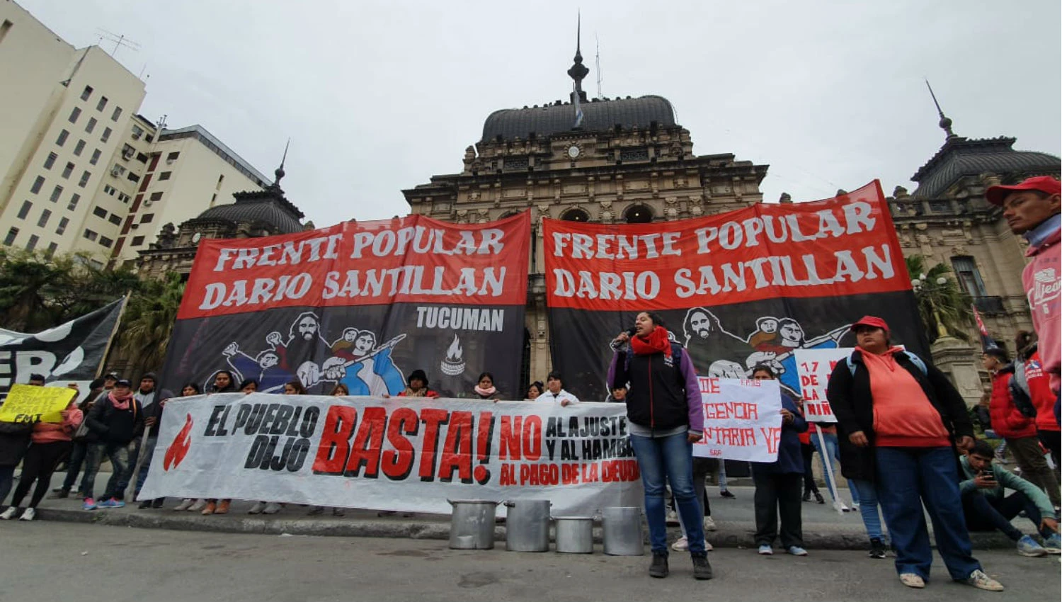 La plaza Independencia es el epicentro de las manifestaciones, de las que participan agrupaciones como el Polo Obrero, el Frente Popular Darío Santillán y el Frente de Organizaciones en Lucha, entre otras. Reclaman más asistencia social, sobre todo, a los merenderos y comedores que sostienen.