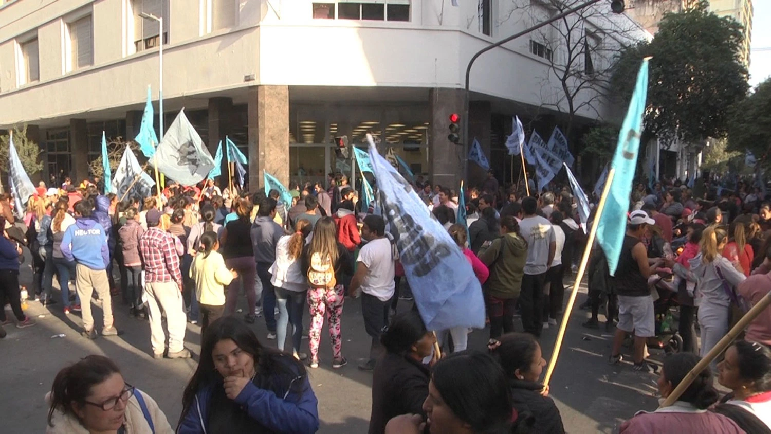 Hombres, mujeres, niños y bebés en sus cochecitos. Todos pasaron la mañana y la tarde en la esquina de 25 de Mayo y Córdoba, donde protestaron porque llevan 60 días sin cobrar el Salario Social Complementario (SSC).