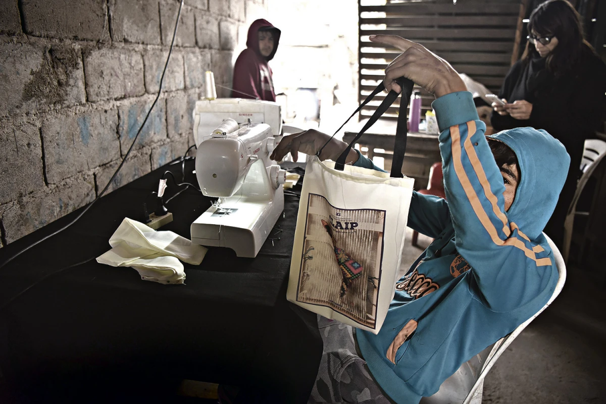El nombre de este equipo -integrado por jóvenes de Los Vázquez- es “Con esperanza nos fortalecemos” y forma parte de un proyecto de prevención, ayuda y lucha contra las adicciones. Desde 2014, dicho espacio viene cambiando el barrio y a sus habitantes, permitiéndoles a quienes están en recuperación reinsertarse en la sociedad a través de trabajos manuales. Así fue como surgió la idea de crear accesorios textiles y -con la ayuda de la universidad San Pablo-T y sus talleres- los nuevos estudiantes se transformaron en expertos de corte y confección.
