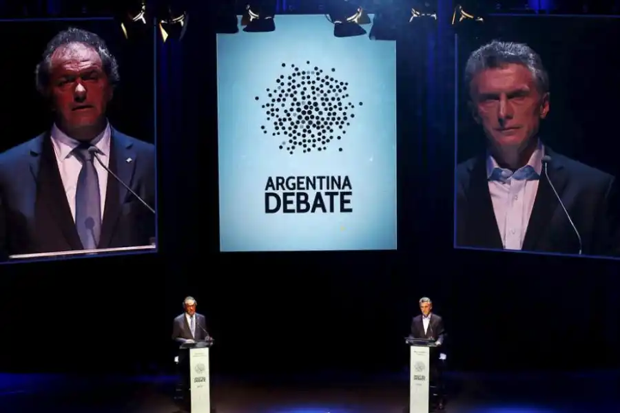 El primer debate presidencial de la historia argentina debió esperar al tercer milenio: data del siglo XXI. Aconteció hace apenas cuatro años. El domingo 15 de noviembre de 2015, Daniel Scioli y Mauricio Macri, antes del balotaje, mantuvieron un encuentro tenso y los dos se mostraron agresivos. El peronista criticó las propuestas económicas de su oponente y las calificó de “un peligro para el país”. El porteño machacó en la condición kirchnerista de su oponente. Ninguno nombró a la entonces presidenta Cristina Fernández de Kirchner. Macri prometió “pobreza cero”, crear 2 millones de puestos de trabajo y otorgar 1 millón de créditos. El entonces jefe de Gobierno de la ciudad de Buenos Aires también propuso instrumentar un plan de infraestructura para “conectar” a Argentina. Scioli, a su turno, basó casi toda su argumentación en la defensa de la educación pública (propuso, específicamente, “universalizar” la sala de tres años) y de la Asignación Universal por Hijo. En materia de seguridad, el entonces gobernador de la provincia de Buenos Aires hizo suyas las propuestas que había impulsado Sergio Massa en la primera vuelta: fuerte inversión en logística y tecnología para reforzar la prevención y más recursos para Gendarmería y Prefectura. El líder del PRO, en tanto, denunció que el narcotráfico había recrudecido de tal manera durante el kirchnerismo, que la Argentina ya había dejado de ser un “país de tránsito” para convertirse en uno de “producción” de sustancias ilegales. “Insistís en debatir con funcionarios que se van el 10 de diciembre. Debatí conmigo”, le dijo Scioli a su oponente. “Vos hacés de vocero mío, de las cosas que no voy a hacer, y yo te pido que hables de tus propuestas”, le reclamó Macri a su adversario.