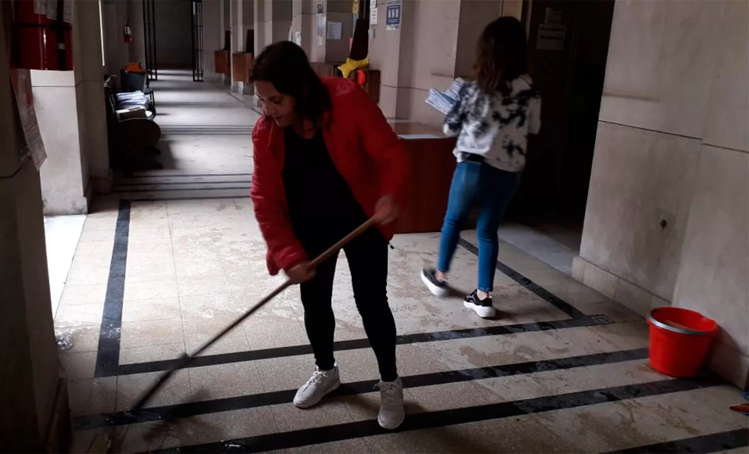 "Debido a las lluvias acontecidas en las últimas horas, en el Palacio de Tribunales ocurrió una obstrucción en la bajada pluvial, en la boqueta y en la boca de acceso a la vereda del edificio. La obstrucción afectó al sector contiguo del hall central del Palacio (en particular, a una dependencia del Juzgado de Familia de la VII Nominación, a otra de la Cámara de Familia y a las oficinas de la Dirección de Comunicación Pública)", afirma.