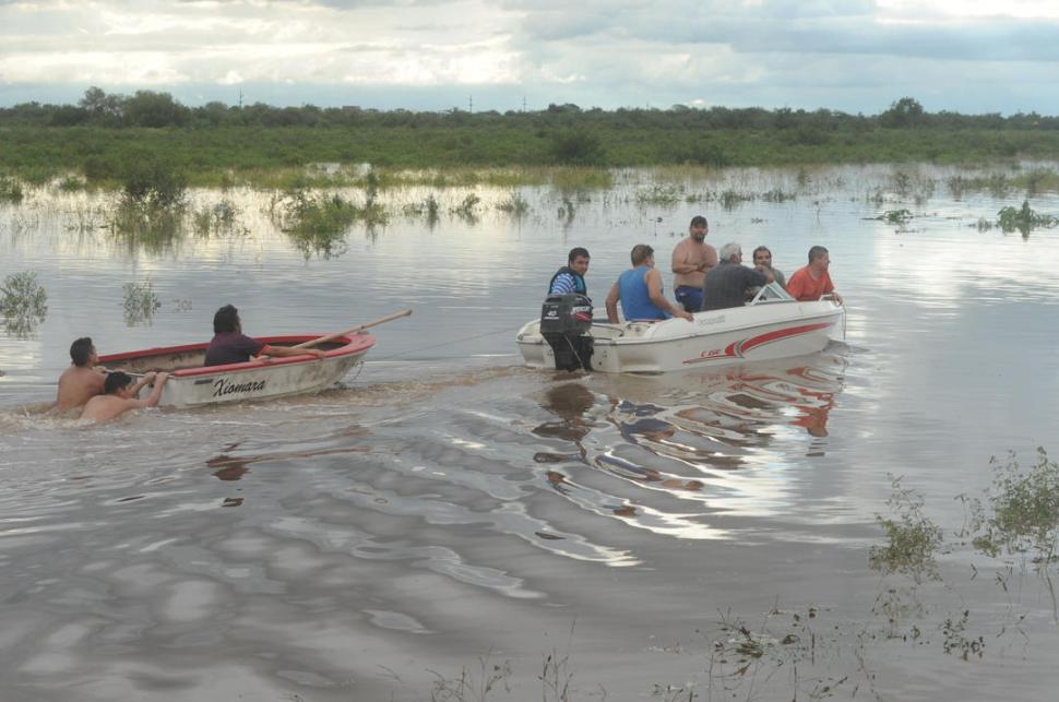 DESAMPARADOS. Un grupo de vecinos de La Madrid circula en bote por la zona inundada durante la catástrofe de abril de 2017. DESAMPARADOS. Un grupo de vecinos de La Madrid circula en bote por la zona inundada durante la catástrofe de abril de 2017. LA GACETA / ANTONIO FERRONI