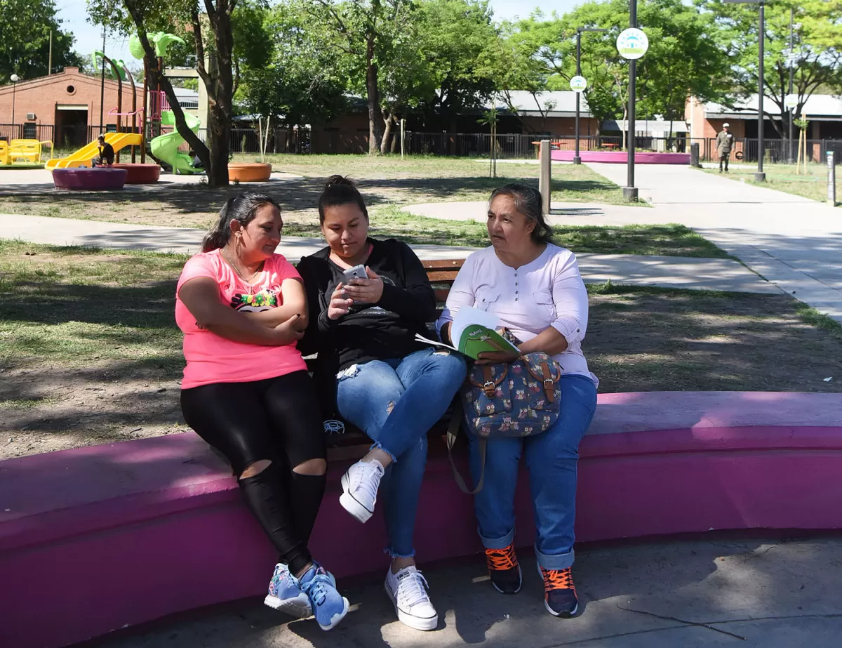 En la otra punta de la ciudad, en el nuevo parque cerrado de El Provincial, Griselda Guerrero, de 32 años, y María Ángela Páez, de 46, charlan bajo la sombra que les regala el arbolado del nuevo espacio verde del sur de la capital. Sus hijos estudian en la escuela Especial de Sordos Próspero García. Las acompaña, como todos los martes y jueves, Rita Quinteros, de 24 años, hermana de una alumna de esa misma institución. La más joven es oriunda de Delfín Gallo, departamento Cruz Alta.