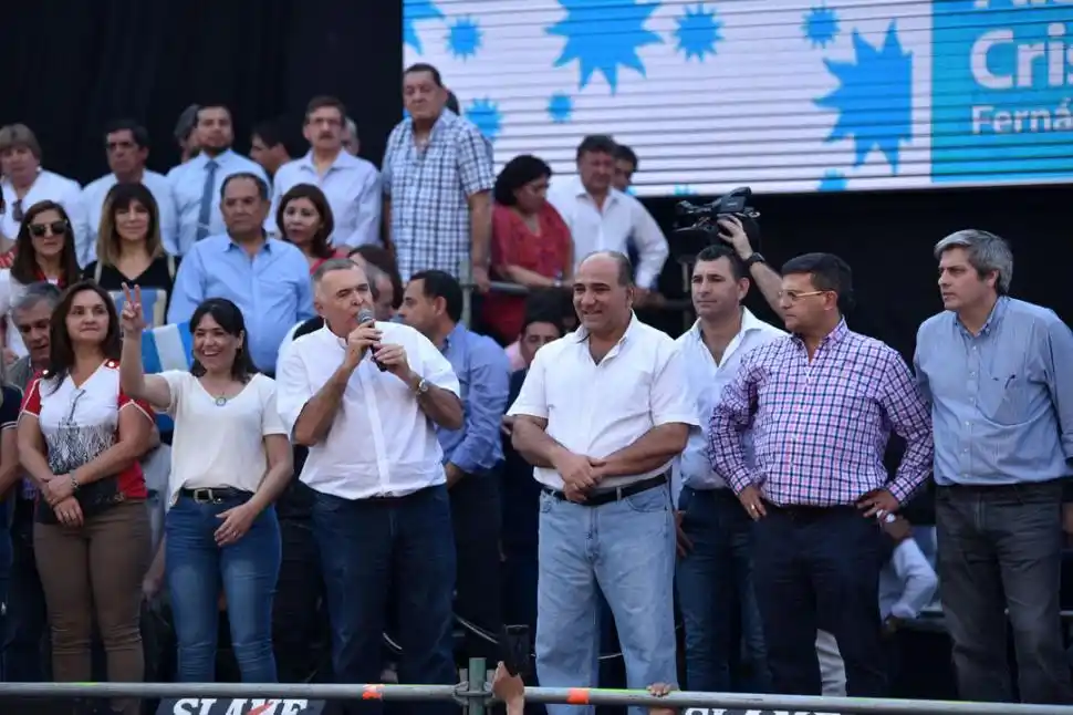 El clima de tensión fue tal que el propio gobernador, al cierre de su discurso, instó a la gente a mantener la calma. “Compañeros, tranquilos, tranquilos, ¡tranquilos, compañeros!”, pedía, ante algunos empujones que se producían entre agrupaciones oficialistas. Y cerró su discurso llamando a apoyar en las urnas al Frente de Todos. “¡Claro que vamos a volver! El domingo, todo el mundo a votar, con alegría, con esperanza, con entusiasmo. El domingo vuelve la esperanza en la Argentina de la mano del peronismo, de la mano de Alberto y Cristina. ¡Muchas gracias, compañeros!”, se despidió, saludando también al vicegobernador, Osvaldo Jaldo.