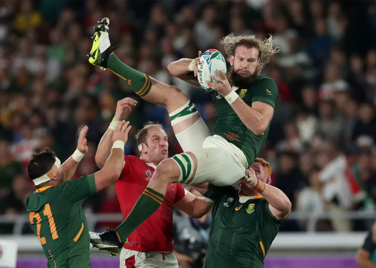 EN EL SUR. El sudafricano RG Snyman toma la ovalada en una acción durante la semifinal ante Gales. Como las selecciones del sur, Sudáfrica se destaca por la fuerza. REUTERS