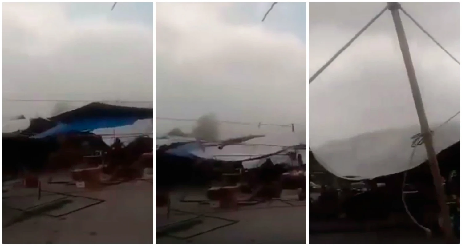 Un impactante video de la tormenta fue compartido por nuestros lectores. En la grabación se ve cómo las lonas de los puestos vuelan por el viento.