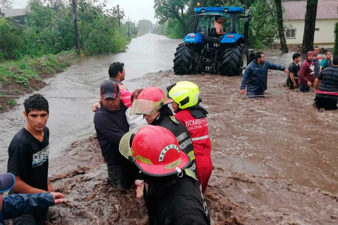 Con agua hasta la cintura, vecinos y bomberos evacuaron esta mañana una escuela en Arcadia. Niños y maestros fueron rescatados luego de que la institución se inunde.
