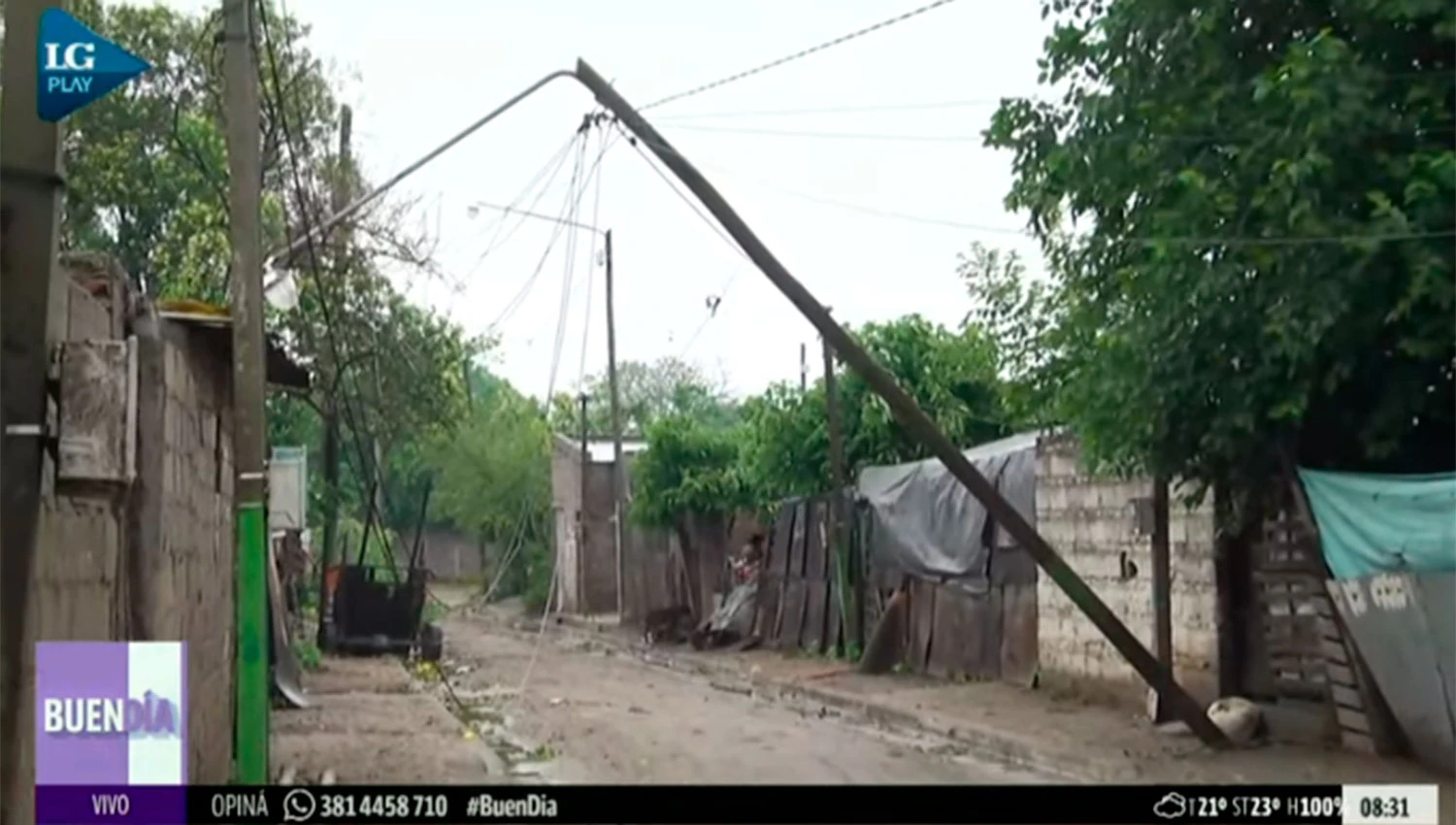 Voladura de techos, árboles caídos y cortes de luz se repiten en Los Vázquez, por ejemplo. En un comedor, al que asisten 400 personas a diario, quedó destrozado por la lluvia y el viento. "Estamos sin luz ni agua", dijo María Angélica Caro a LG Play.