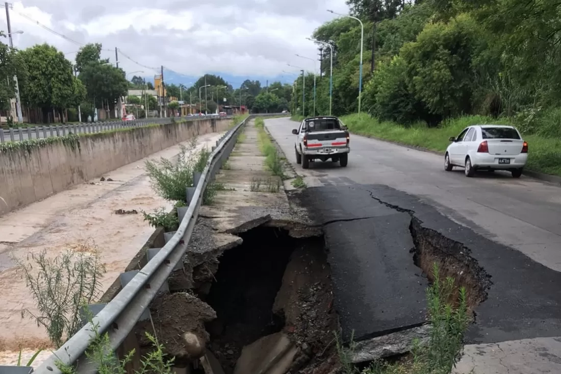 Como suele suceder en cada temporada estival, las lluvias arrasan con varios caminos en Tucumán. Calles anegadas, vecinos que sufren por las inundaciones, puentes que se los lleva el agua. En la madrugada, la intensa lluvia provocó daños, una vez más, en un sector del Canal Sur, que da hacia avenida Alfredo Guzmán. Un brazo de contención del muro se desmoronó.