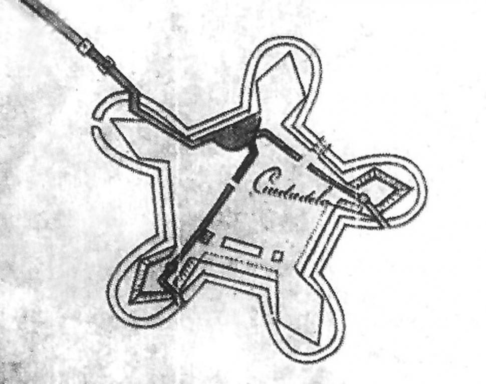 LA CIUDADELA. La fortaleza dibujada en un antiguo plano de San Miguel de Tucumán.