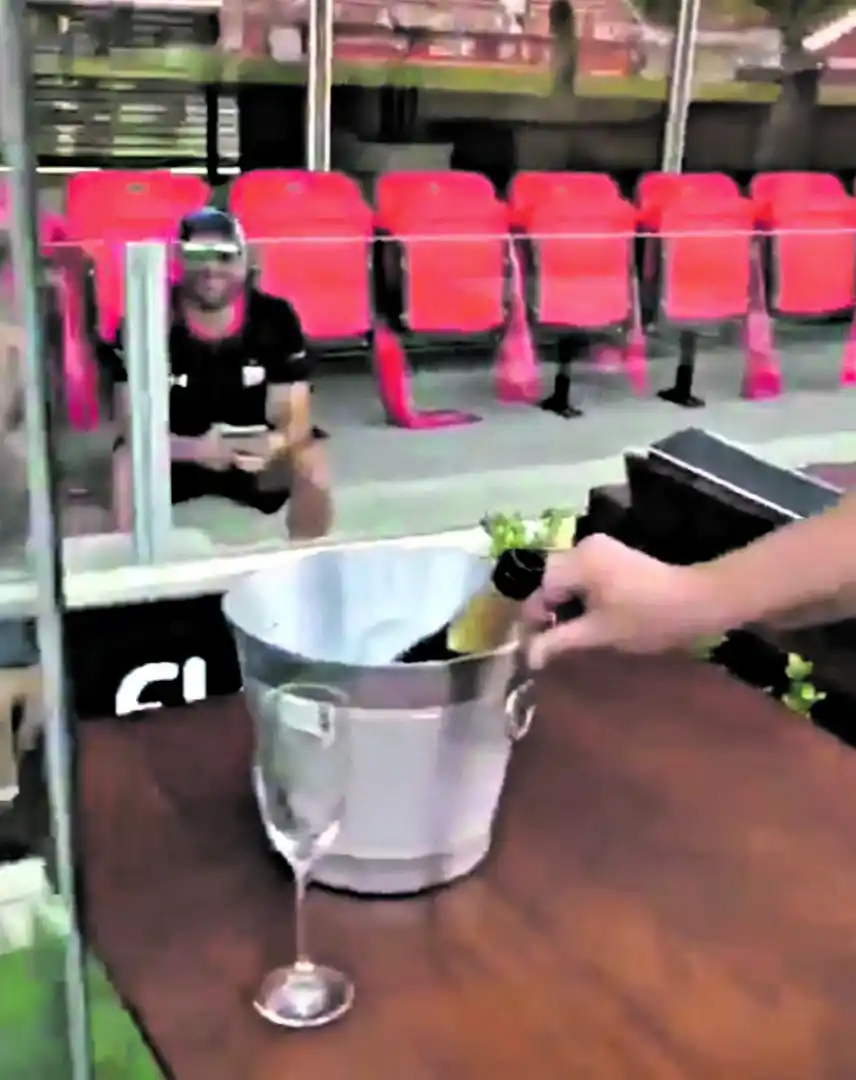 Con la estatua de Bilardo, el club puso una hielera, una botella de champagne pero con Gatorade. Rememoraron así, cuando el doctor hizo lo mismo ante River en 2004.