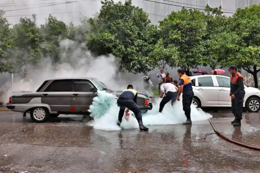 El dueño del Falcon tuvo la desgracia de que el vehículo se le incendiara; y al mismo tiempo, la fortuna de que el siniestro ocurriera frente al complejo Ledesma por 25 de Mayo al 900, a media cuadra del cuartel de Bomberos, por lo que recibió ayuda casi de inmediato.