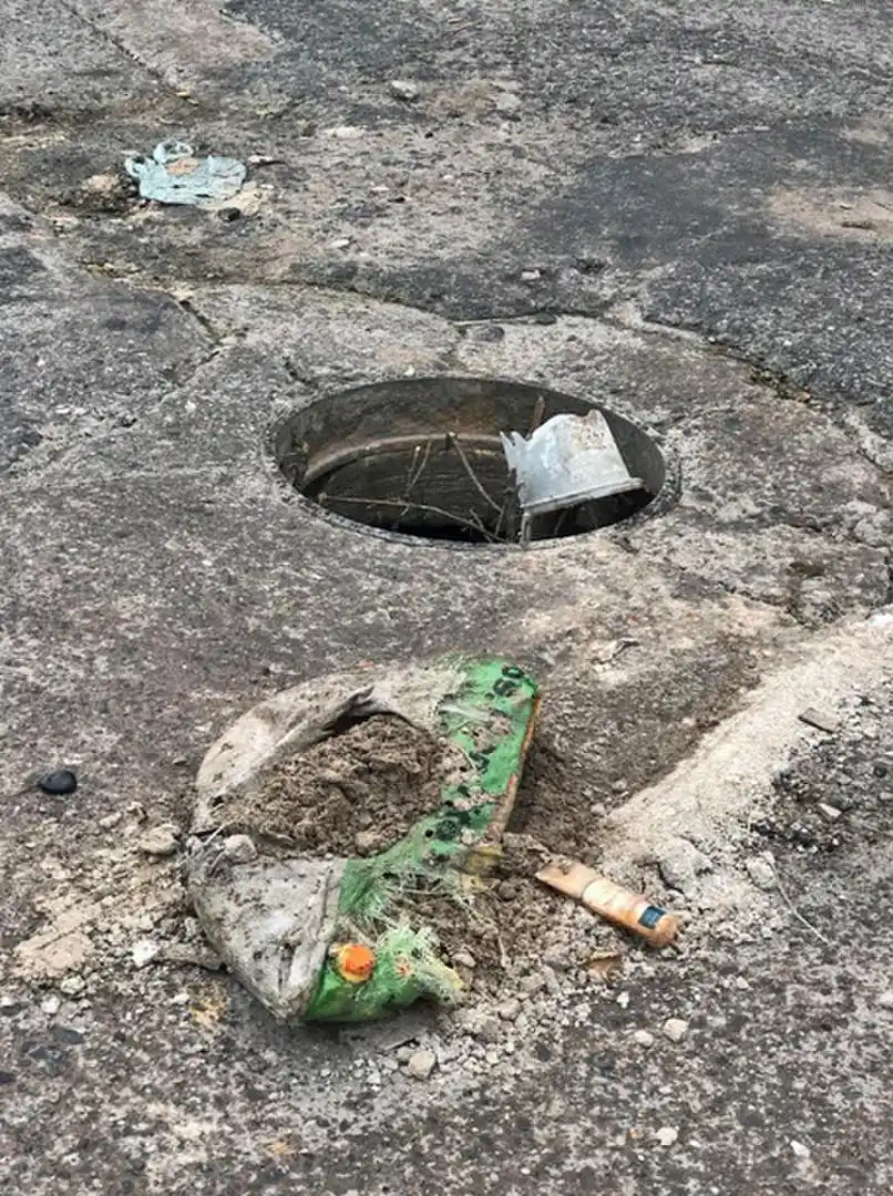 Cloaca sin tapa en la esquina de Junín y México