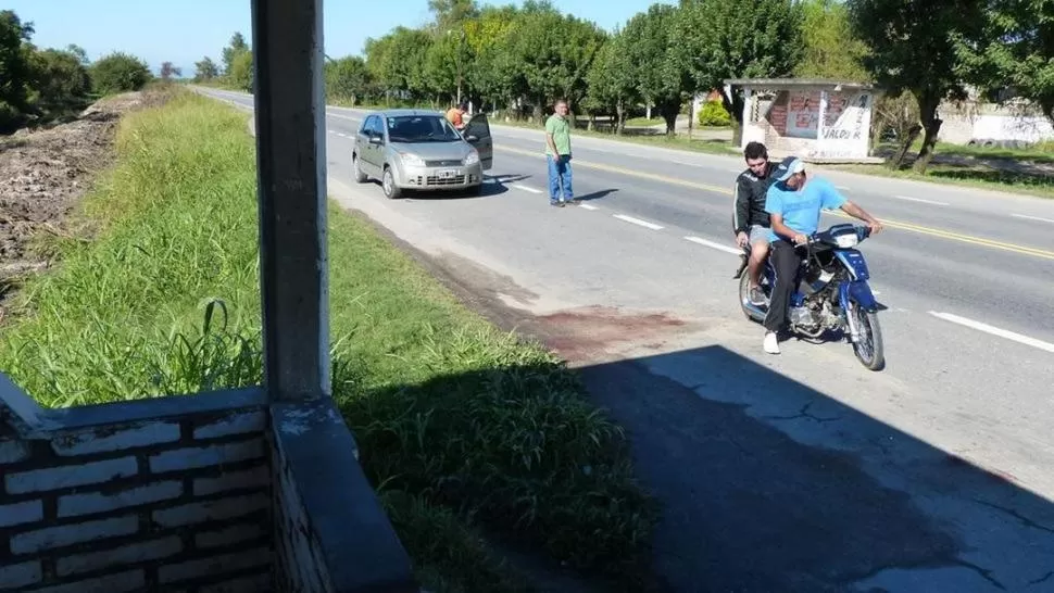 EL LUGAR. Dos jóvenes de Río Colorado pasan por el lugar donde asesinaron a los dos policías en abril de 2015.