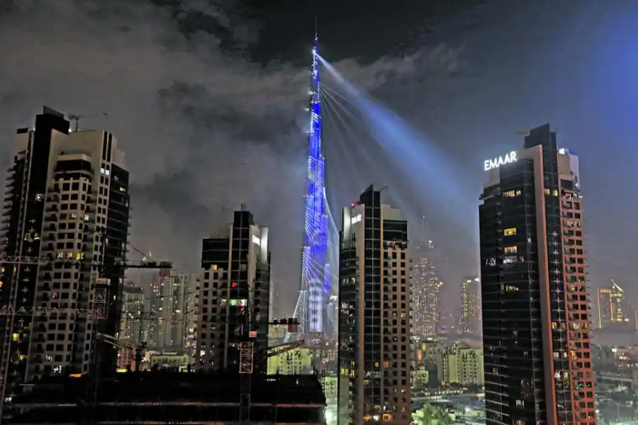 El edificio más alto del mundo (828 metros de altura) se iluminó para acompañar las celebraciones del Año Nuevo. Para la noche del 31 se prepara un gran espectáculo en el edificio.