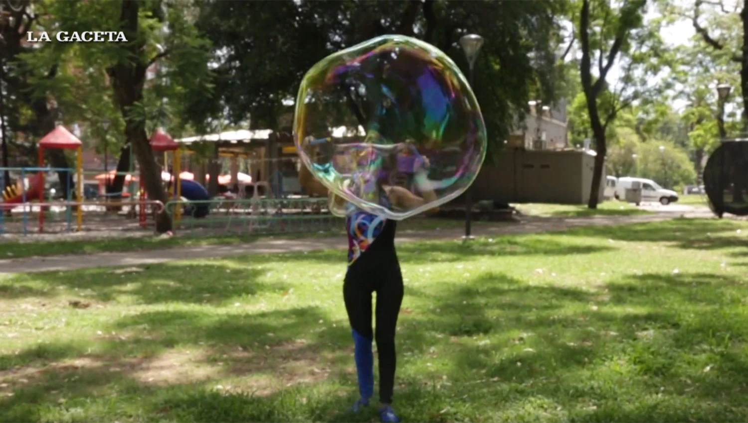“Burbular” es un emprendimiento que se define como una alternativa a la pirotecnia y promueve el reciclado de materiales en desuso. Detrás de las burbujas gigantes está la artista Leticia Albarracín, quien trajo la propuesta a Tucumán.