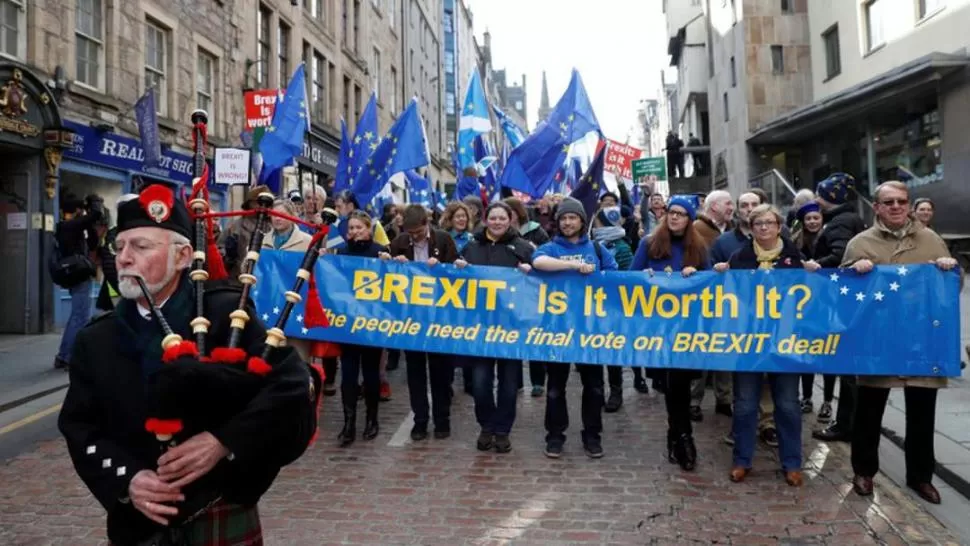 EN 2018. Entre gaitas y pancartas, los escoceses reclamaron que el Reino Unido tuviera una salida consensuada y ordenada de la Unión Europea. reuters