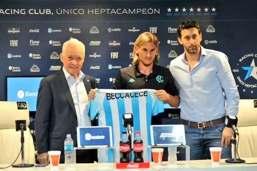 Sin refuerzos, porque todavía no se cerró el préstamo del juvenil Benjamín Garré (Manchester City), el plantel de Racing inició el ciclo bajo la conducción de Sebastián Beccacece (en la foto, la presentación oficial). Ante la posibilidad de que Alejandro Donatti sea transferido a San Lorenzo, el DT le pidió a Víctor Blanco, presidente del club, que lo retenga a toda costa. Otros futbolistas de Racing buscados en este mercado son Nery Domínguez, a quien Coudet quiere llevar al Inter de Porto Alegre, y el paraguayo Matías Rojas, por el que se recibió una oferta insuficiente del Almería español. El debut oficial de Beccacece será el domingo 26 de enero ante Atlético, en Avellaneda