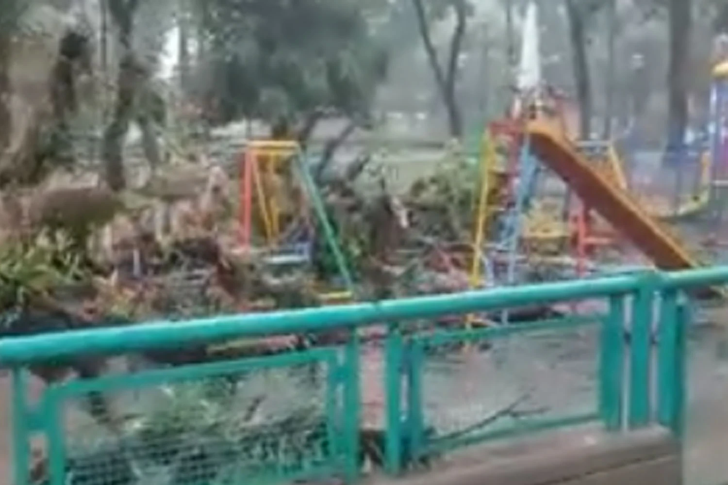 Un lector filmó la escena y la envió a LG WhatsApp. Allí puede verse que la parte de la copa del árbol cayó sobre el sector donde están ubicados los juegos infantiles.