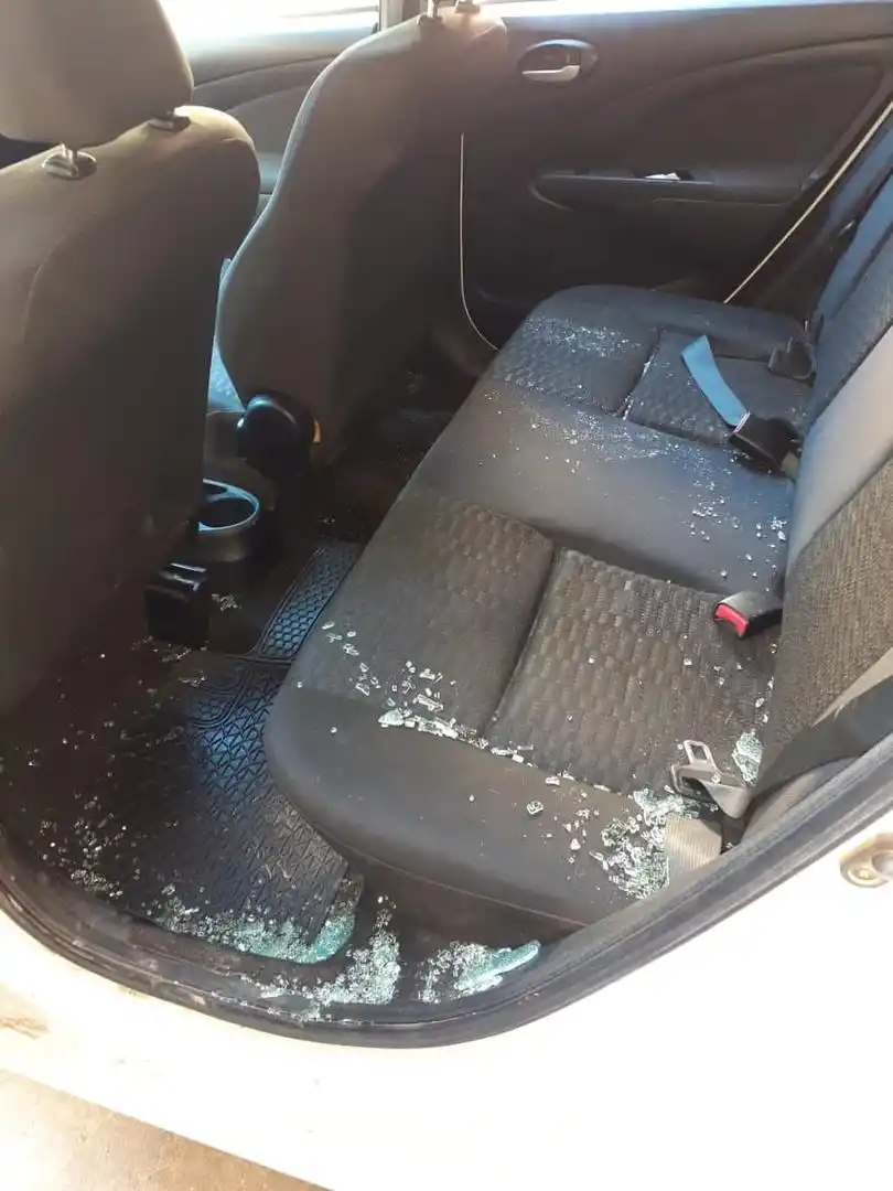 Según relató Sergio, decidieron tomar la ruta vieja, ya que la considera más directa para llegar a la ciudad. Pero nunca esperó que en el momento en que esa ruta se bifurca en dos caminos, dos hombres que circulaban en moto le arrojaron una piedra al auto de su hijo, rompiendo el vidrio de la ventanilla trasera izquierda. “Un pedazo de vidrio impactó en el brazo de mi hijo y le generó pequeñas laceraciones, pero nada importante”, aseguró.
