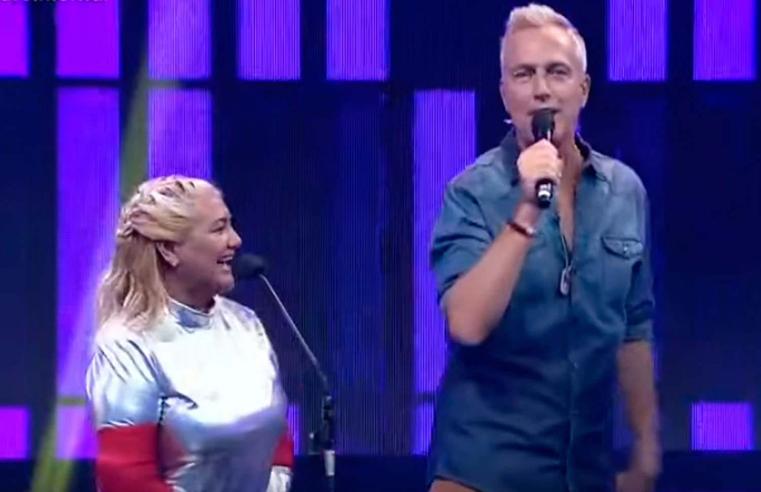 Con un traje plateado -como lo dicta el programa- y una pollera haciendo alusión a su tema más famoso, "La Bomba" abrió la noche. Charlando con el conductor, la cantante contó que bajó de peso y que está entrenando mucho y cuidándose en las comidas.