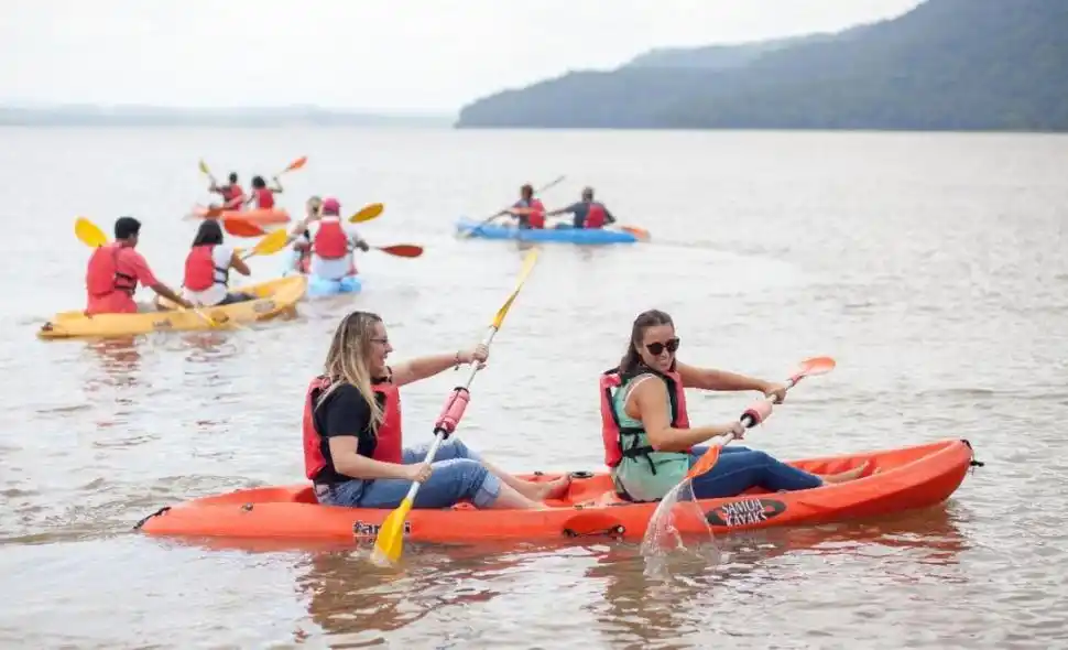 En fila y a la vera del agua, los kayacs de “Tucumán Kayak Club” (TKC) nos aguardan para una sesión de remo. Su alquiler cuesta $ 300 -la media hora- y antes de zarpar los guías resumen la técnica de manejo en tres aspectos prácticos. Los brazos siempre deben ir al frente, la cuchara hacia arriba y un “miren que se van a mojar, así que es mejor dejar las zapatillas al costado”.