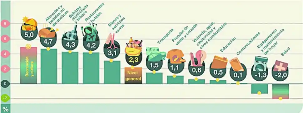 Para lograr una inflación del 2,3%, hay algunos factores que el Indec consideró como casi determinantes: la “deflación” registrada en Salud (-2,0% respecto de diciembre) y Equipamiento y mantenimiento del hogar (-1,3%). Este fenómeno no es extrapolable a los meses subsiguientes, aclara el Ieral.