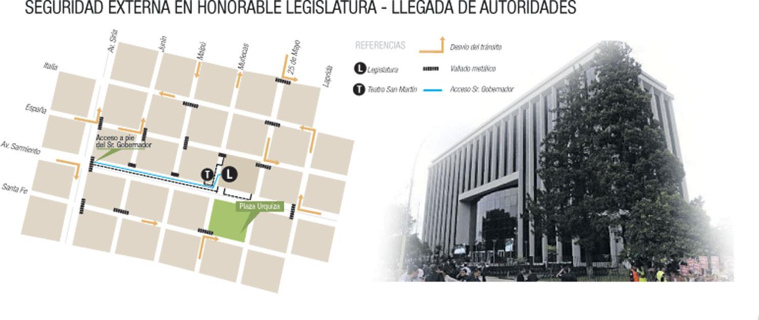 Según se informó desde la Jefatura de Policía, el dispositivo se efectuará en las calles que rodea el recinto legislativo para interrumpir el paso de vehículos durante las horas que sean necesarias hasta el fin de la sesión, cerca del mediodía.