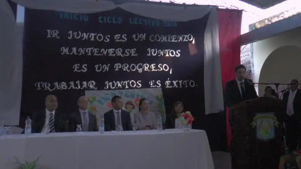 El patio de la modesta escuela a la que asisten 580 alumnos se pobló completamente. Mientras el calor bajaba de un tinglado de chapas, abajo se acomodaron las sillas en filas para recibir a decenas de funcionarios, pero también a los estudiantes de primaria y del primer ciclo, que concurrieron con sus uniformes impecables.
