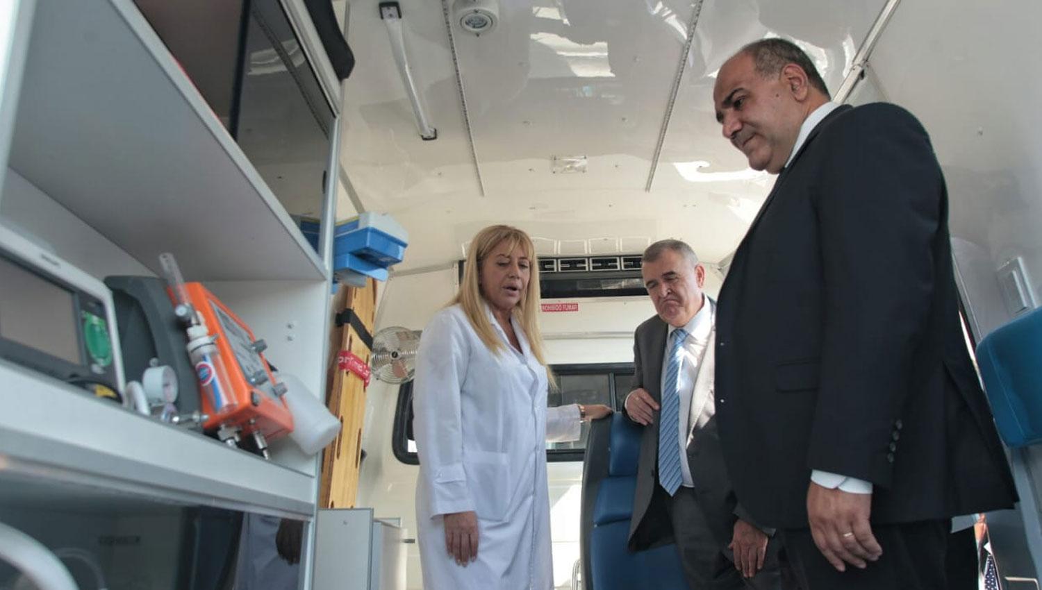 PREPARADOS. El mandatario participó ayer de la entrega al Siprosa de una ambulancia equipada para aislar casos de coronavirus. FOTO TOMADA DE TWITTER.COM/JUANMANZUROK