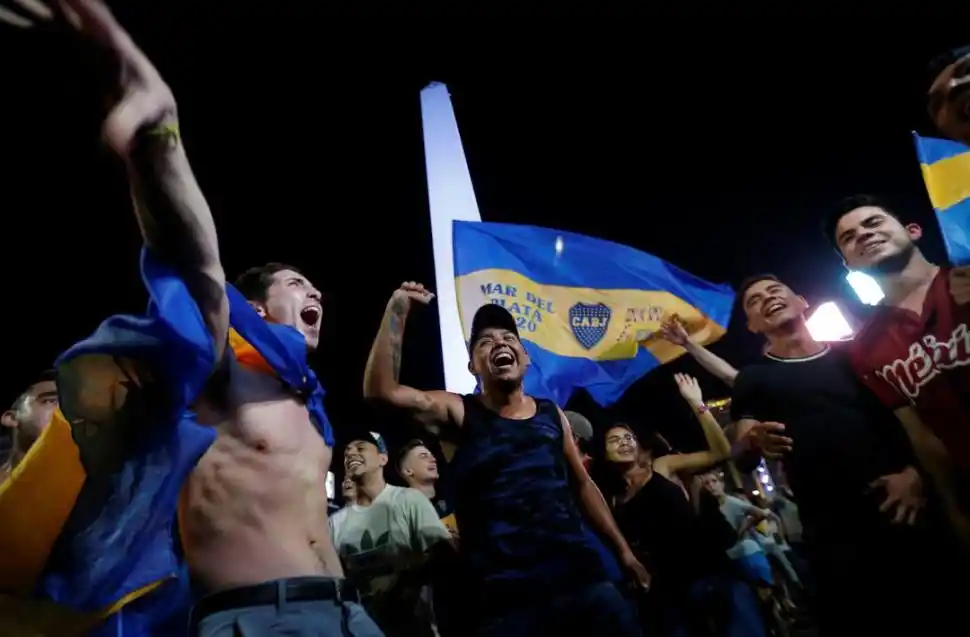 Caretas con la imagen de Carlos Tevez y banderas con los colores azul y amarillo fueron parte de la fisonomía de la noche en el Obelisco tras la consagración de Boca como campeón de la Superliga. Los hinchas, que llegaron desde la zona de Avenida Corrientes, arribaron en autos o caminando por sobre la zona del monumento que se vistió paulatinamente de hinchas y banderas con los colores “azul y oro”.