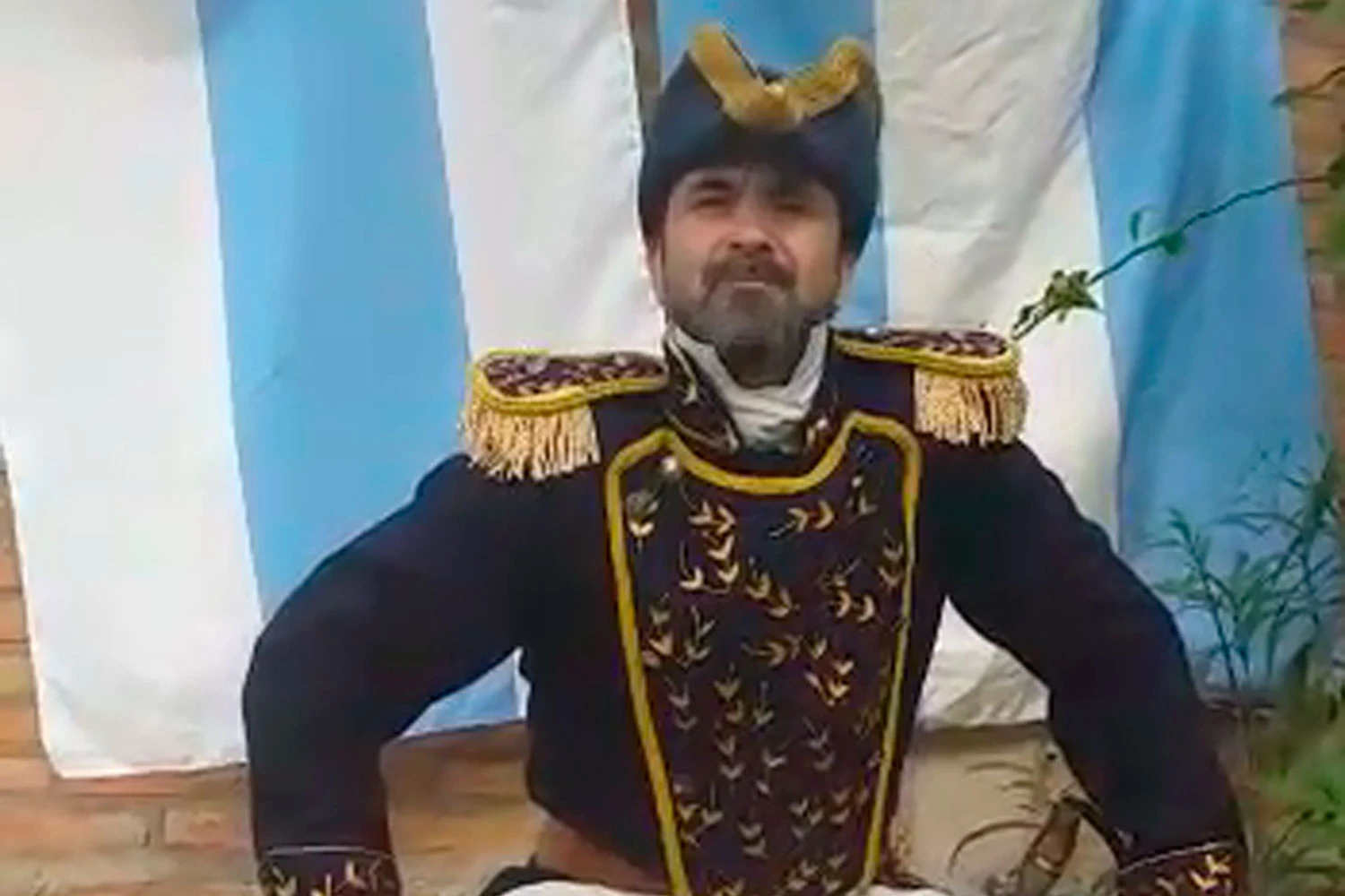 Con dos banderas de fondo, la espada y la pava en la mesa, el actor alentó a los tucumanos en la cuarentena: "a pesar de la difícil situación que nos toca vivir, debemos tomar conciencia, debemos enfrentar al enemigo y quedarnos en casa es la mejor manera de ayudar. Tal vez así consigamos una gran victoria".