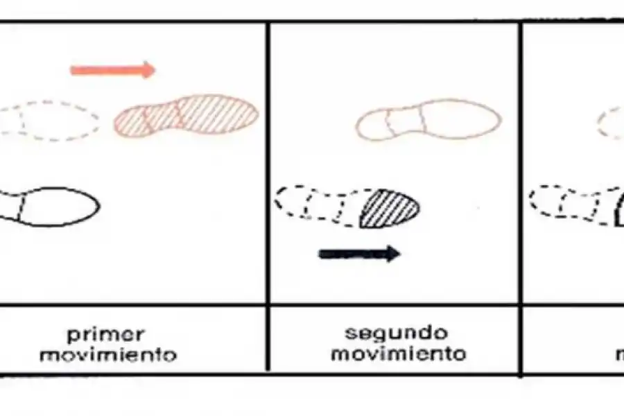 Ahora, aprenderemos a hacer el Paso básico de baile, que es el empleado en la mayoría de las danzas. El Paso básico tiene tres movimientos de avance, con desplazamiento en el primero y en tercero. Estos tres movimientos entrarán en un compás musical. Cuando se acaba la serie con un pie, se repiten todos los movimientos con el otro.