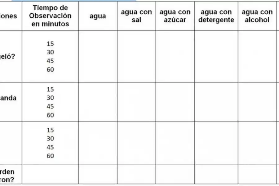 -¿Qué pasó con los líquidos contenidos en los vasos? ¿Se congelaron todos o sólo algunos? ¿En qué orden lo hicieron?