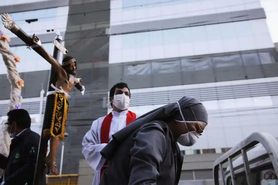 Una procesión de fieles católicos marchó por las calles de La Paz, en Bolivia. Reducida en número y con personas distanciadas debido a las restricciones impuestas para reducir el contagio de coronavirus, la procesión protagonizó un Viernes Santo atípico en muchos países de tradición católica.