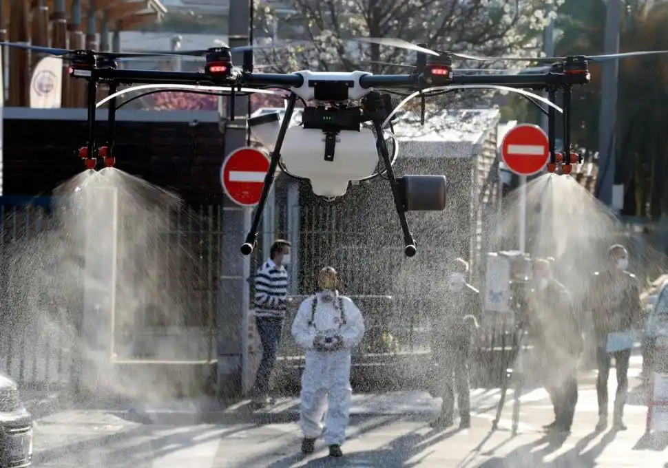 En la ciudad francesa de Cannes, las cuadrillas sanitarias usan drones para esparcir desinfectante en las calles. Es una de las medidas que tomó el gobierno municipal para combatir la expansión del coronavirus.