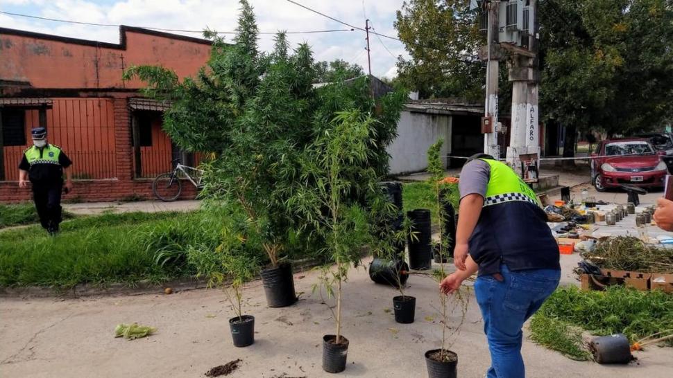 Los policías allanaron una vivienda en el sur de la ciudad, donde secuestraron 20 plantas de marihuana de más de dos metros de altura; casi dos kilos de la misma droga en frascos, elementos para la producción del vegetal, un arma calibre 9 milímetros y cámaras de seguridad instaladas que servirían para observar el movimiento de personas extrañas. En esa vivienda fue detenido un hombre, que según su defensor, no tiene nada que ver.