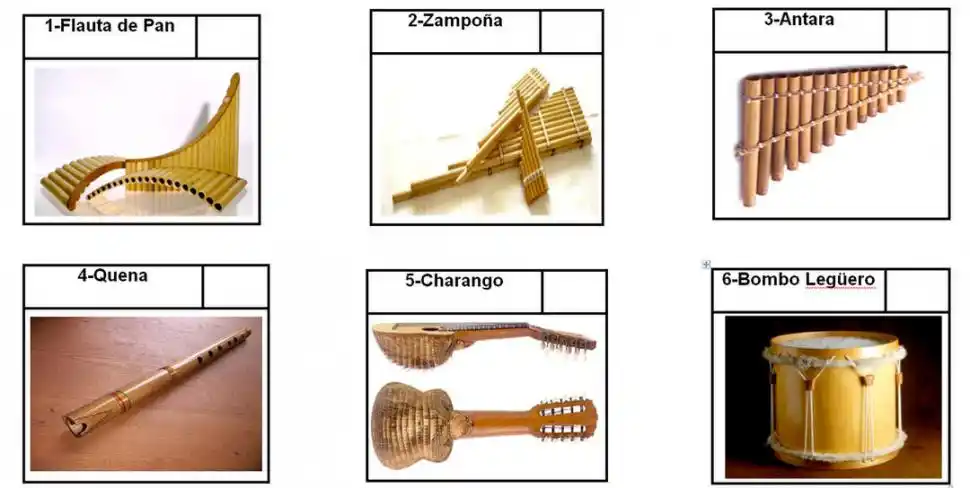 Los instrumentos usados en la música andina son la flauta de pan, la zampoña, la antara, la quena, el charango, el bombo legüero y la wankara,