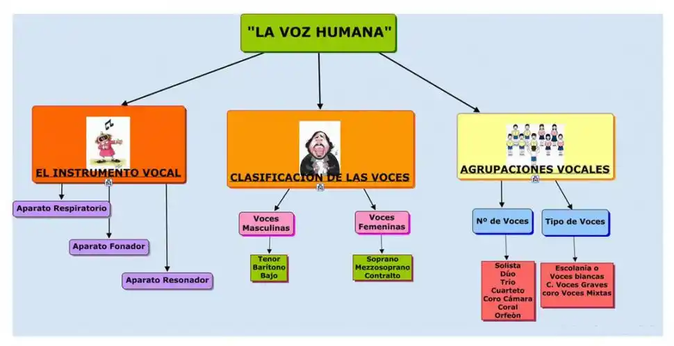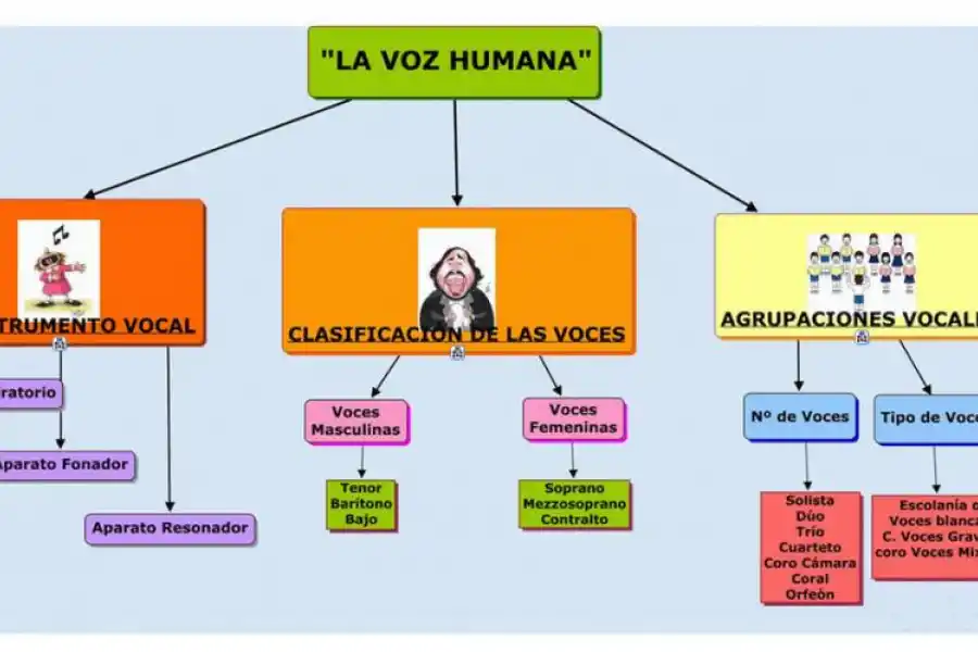 Las voces humanas no son todas iguales. De hecho, muchas veces lo que distingue a una persona de otra, además de su nombre, es su voz. Observa el siguiente cuadro de clasificación de las voces y luego responde: