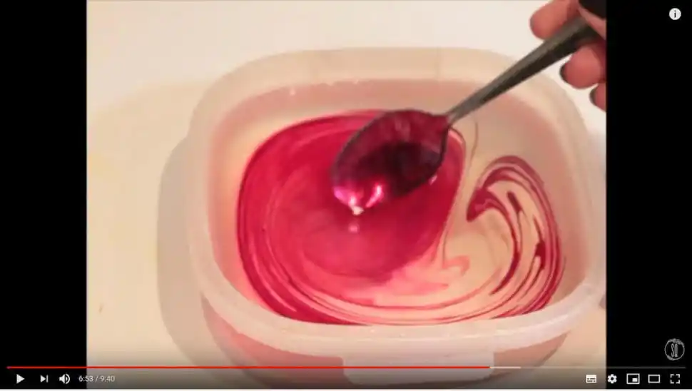Paso 2: agregar a nuestra glucosa un poco de colorante rojo y mezclar hasta que el color se vea uniforme.