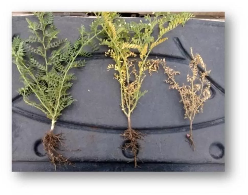 Entre los factores bióticos que afectan el rendimiento los especialistas identificaron que el marchitamiento por Fusarium oxysporum es una de las limitantes productivas más grandes del mundo y ha sido detectado en la mayoría de los países donde se cultiva el garbanzo: Bangladesh, Etiopía, India, Pakistán, Irán, México, EEUU, Perú y la Argentina.