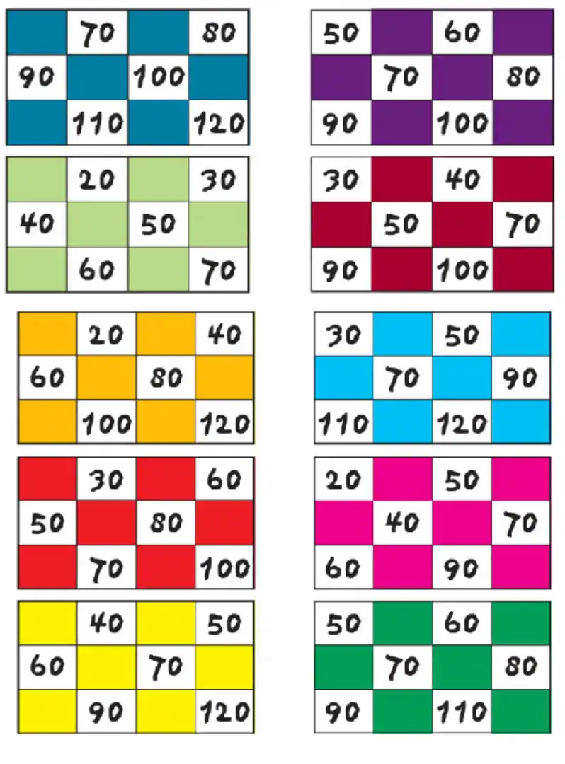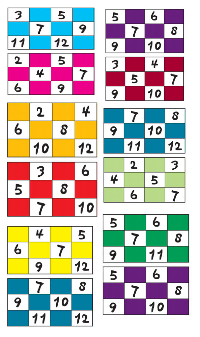 2. Los demás jugadores tienen que colocar un poroto (o cualquier otra pieza pequeña) sobre los casilleros de su cartón en los cuales se encuentre la suma o la resta que da por resultado ese dígito.
