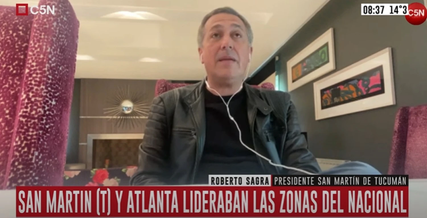 En una extensa nota concedida al canal de noticias C5N, Sagra no se guardó nada e insistió en que San Martín hizo los méritos deportivos para conseguir el ascenso a Primera. "Tengo una responsabilidad institucional hacia los socios y los hinchas. Están cometiendo una situación de desigualdad, castigando al mérito deportivo. Entiendo que no se castigue a los descensos, pero no se va a premiar el mérito deportivo".