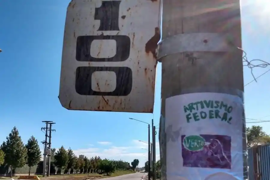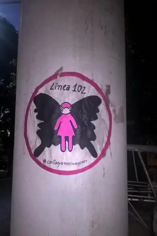 “Los femicidios no están de cuarentena” se puede leer en un cartel incorporado a un poste en una de las peatonales. En una desolada parada de la línea 100, en Yerba Buena, se publicita el artivismo federal.