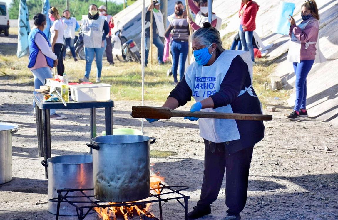 Según los organizadores, la protesta se realiza ante las dificultades que se están registrando en la entrega de alimentos. "Hace varios días que las ollas populares se multiplican en los barrios. La falta de alimentos suficiente hace que vecinos y vecinas se organicen para hacerle frente a esta grave situación. En su mayoria, cocinando a leña", afirmó la coordinadora nacional de Barrios de Pie, Silvia Saravia.