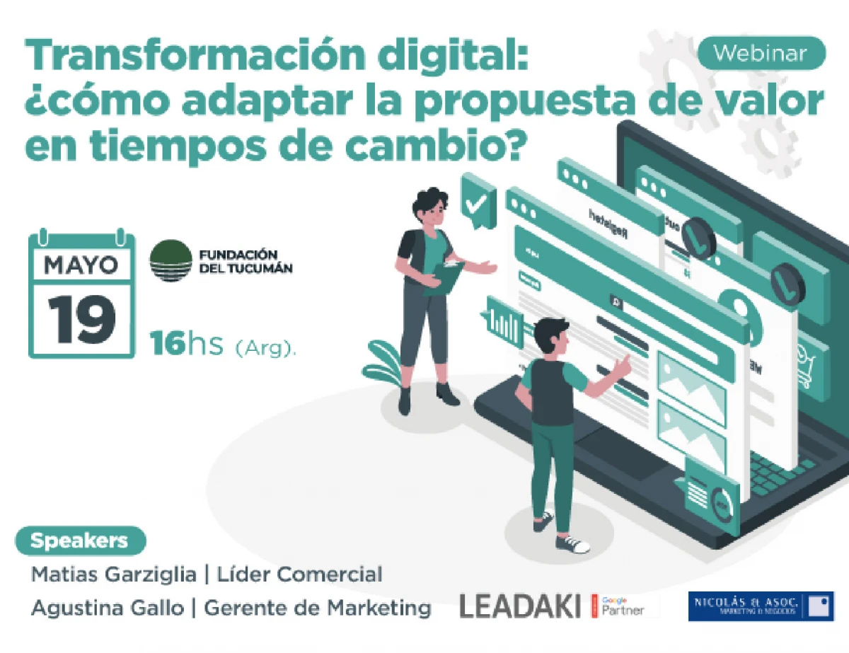 Los interesados pueden inscribirse gratuitamente en: https://app.livestorm.co/cliengo/transformacion-digital-como-adaptar-la-propuesta-de-valor-en-tiempos-de-cambio?utm_source=livestorm&utm_medium=registro&utm_campaign=webinar&utm_term=fundacion_tucuman&fbclid=IwAR0srNUpO5CpORBcgAQU7zBhl_EXiT2-IFPTR8a5-l715Rl1D--5wPmAG2g